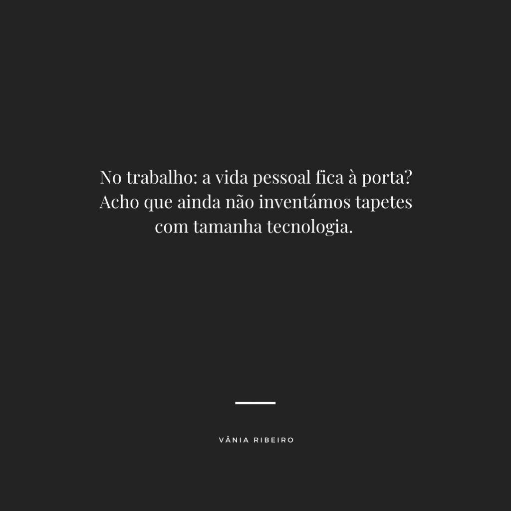 Não são raras as vezes que ouço a afirmação “eu deixo a vida pessoal à porta” ou “quero que deixe a vida pessoal à porta”. Mas será mesmo assim? Acho que ainda não inventámos tapetes com tamanha tecnologia. Parece-me que esta exigência, para consigo próprio ou imposta por outros funciona numa ótica de contenção, que […]